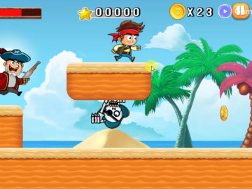 Jake vs Pirate Run är ett spännande löparspel där du måste hjälpa en ung sjöman att slutföra en utmanande hinderbana medan han jagas av en ond pirat som vill stjäla hans skatt. Medan du flyr och hanterar alla möjliga dödliga hinder och farliga fiender, glöm inte att se dig om och undvika att bli skjuten av piraten. Ha kul och njut av ett verkligt imponerande spel medan du kämpar för att klara alla 5 nivåer och slutföra uppdraget genom att hjälpa Jake att nå sitt skepp och segla iväg från alla hot.