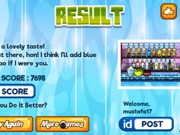 Hjälp den här fantastiska bartendern att blanda sina drinkar i rätt proportioner. Du kan välja ett gäng drinkar som vodka, whisky, tequila och mycket mer från hyllan.