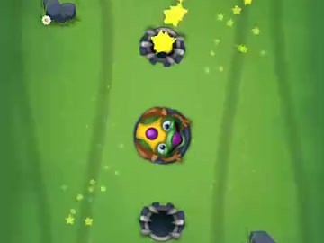 Tryck på grodan för att byta mellan den aktuella och nästa kulan Använd power-ups för att rensa brädet snabbare.