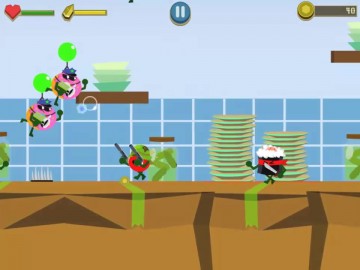 Ha kul med detta roliga nya spel Food Gang Run är ett exklusivt onlinespel för pc, mobil och surfplattor!!! Styr en av tre små figurer mellan en tomat, en banan och en broccoli som behöver dina goda färdigheter för att förflytta sig och förbättra sina poäng! En grupp vänner en tomat, en banan och en broccoli tar över köket för att komma så långt som möjligt och på så sätt kunna fly men på sin väg kommer de att möta många fiender och hinder som flygande polisdonuts, sushi med sina sablar, pizzaskivorna med sina kanoner, jättepumporna med sina enorma vapen och många andra fiender!!! Dodge fiender samla många andra vapen för att slå varje nivå. Spelfunktioner:- Välj mellan 3 unika och galna karaktärer- Lås upp mer än 50 fantastiska färdigheter- Samla stjärnor för att få fantastiska belöningar.
