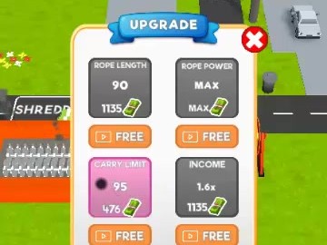 Håll fast vid staden med rep! Förbättra ditt rep och ta tag i staden med ditt rep! Uppgradera med dina insamlade pengar och ta tag i alla byggnader!