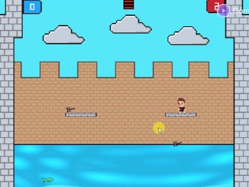 få poäng genom att träffa motståndaren med ett yxkast på rörliga plattformar Den som får 5 poäng vinner spelet