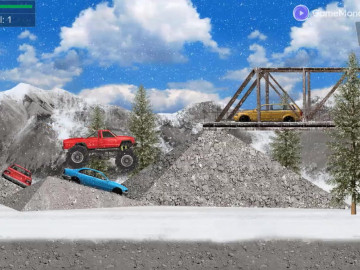 Kör en monstertruck och passera många utmanande hinder i Hard Wheels Winter. Balansera det tunga fordonet medan du kör över snöiga berg och andra bilar.